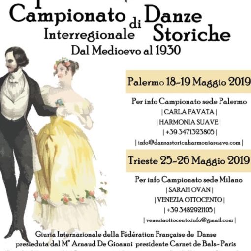 La Compagnia Internazionale di danza storica Harmonia Suave diretta da Carla Favata con privilegio ha il piacere di comunicare che il Maestro Arnaud De Gioanni Presidente della nota Associazione Francese Carnet de Bals terrà uno stage di danze storiche per la prima volta in Sicilia a Mazara e a Palermo dal 22 al 24 Febbraio 2019 !!!! Si ringraziano le scuole Harmonia Suave – Dance Works di Palermo- Mazara- Siracusa- Campobello di Licata, Carnet del Bals Parigi, il Liceo Artistico di Mazara sez. danze storiche giovani, la scuola Garzilli di Palermo, l’Ass. Borboni si nasce Napoli e Ateneo di danze dell’800Palermo, per aver aderito all’iniziativa!!! Un momento unico ed esclusivo per studiare e condividere la danza storica con appassionati italiani e francesi insieme !!!